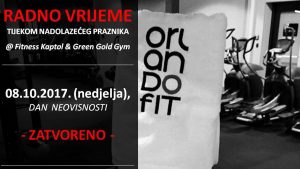 Obavještavamo vas da 08.10.2017. na Dan neovisnosti naši centri neće raditi! Odmorite se preko vikenda i vidimo se u ponedjeljak na duplom treningu…