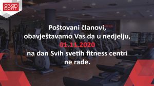 Dragi članovi obavještavamo Vas da će naši centri u nedjelju, 1.11.2020 na dan Svih svetih biti ZATVORENI Zahvaljujemo na razumijevanju i vidimo se…